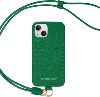 - Includes leather phone case, adjustable leather cord, and high-shine gold hardware