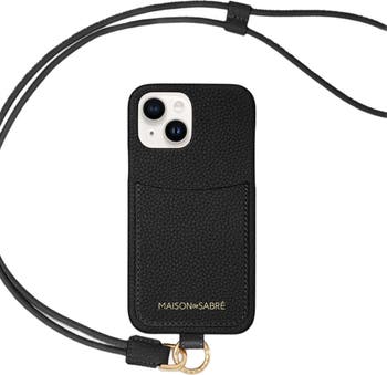 - Includes leather phone case, adjustable leather cord, and high-shine gold hardware