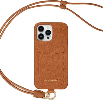 - Includes leather phone case, adjustable leather cord, and high-shine gold hardware