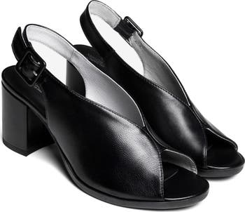 Build out your collection of desk-to-dinner footwear with this Italian-leather slingback sandal featuring a deeply notched topline and peep toe.