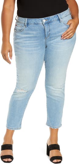 Ripped knees and a faded, whiskered finish add plenty of old-favorite appeal to stretch-denim boyfriend jeans in a perfectly cropped length. True to size.