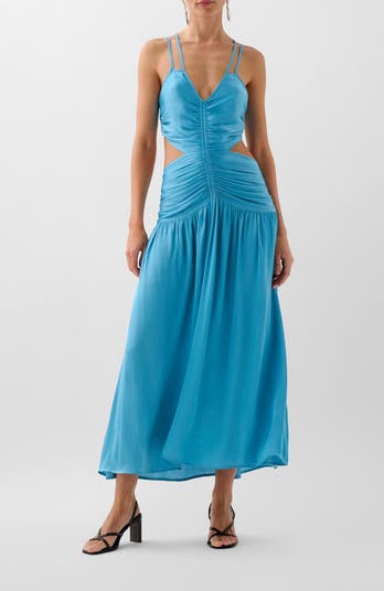 - V-neck with ruching to the waist.