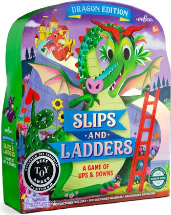 The classic game of "Chutes and Ladders" is reimagined with whimsical dragons.