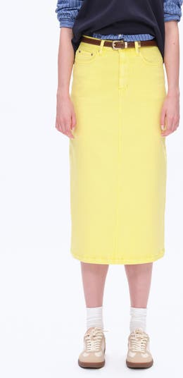 A back slit creates a breezy feel in this midi-length skirt made from stretch-enhanced denim in the perfect sunny shade.