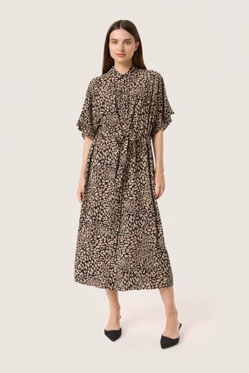 The SLNaya shirt dress is a beautiful maxi dress, that you will wear again and again. It has a spread collar and button fastening, and it has a casual fit with a drawstring waist. The sleeves are short batwing sleeves, and they have a frilled edge.