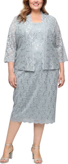 SLNY Floral Lace Sequin Cardigan & Dress Set