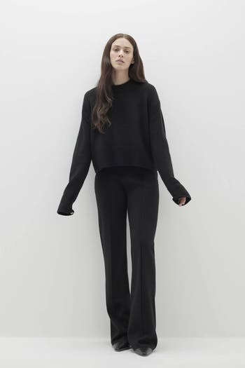 The Sloane Crewneck Sweater exudes effortless style with its cropped fit and donut neckline, crafted from pure cashmere for cozy versatility day or night.