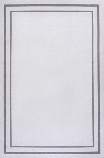 Our classic rug has a traditional striped border with a plain center field. It's woven from durable synthetic fibers with a p chenille texture and cotton backing. This easy-care, washable rug is great for high traffic spaces like a living room, dining room or entry.