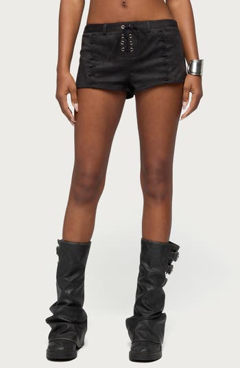 Complete your sultry Western look with the retro style of these faux-suede micro shorts authenticated with whipstitched laces.