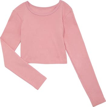 Rib knit cotton spandex. Long sleeves. Pull-on style. Heart cut-out detail. Everyday flattering fit.