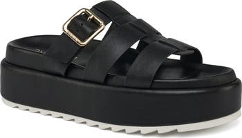 The SLOANE sandal features an adjustable strap with a buckle for a secure fit and a slip-on design for convenience. Its platform sole combines style and comfort for a chic, cool look.