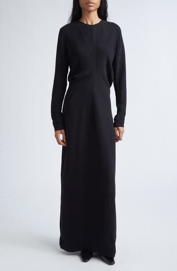 The Stockholm brand's signature slouch defines the waist of this long-sleeve minimalist dress made from fluid matte-finish cady with just-right drape.