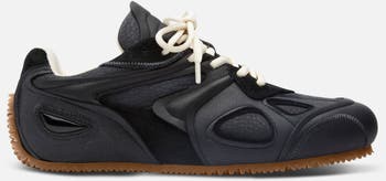 The Slow Runner’s layered, low-profile silhouette embodies the ethos of deconstruction and innovation. A seamless blend of old and new, the upper reimagines the iconic Marathon Runner through familiar, intricate panels of leather, suede and nubuck. This model is set on a sleek, flat outsole with a unique knit-inspired finish that echoes design elements from our ready-to-wear collections.