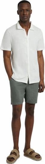 - This button-down is designed in a lightweight cotton knit. It’s tailored for a relaxed, casual fit with a shirt collar, short sleeves, and a straight hem.