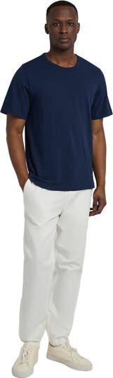 A refined update to a classic, this tee shirt is knit from cotton slub yarns with a slightly nubby texture. It has a crewneck, short sleeves, and a straight hem that’s scalloped at the edges.
