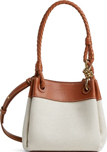 A single intricate knot—a key element of the label's DNA—adds a flash of gleam to this compact crossbody bag crafted from linen-lightened canvas and calfskin.