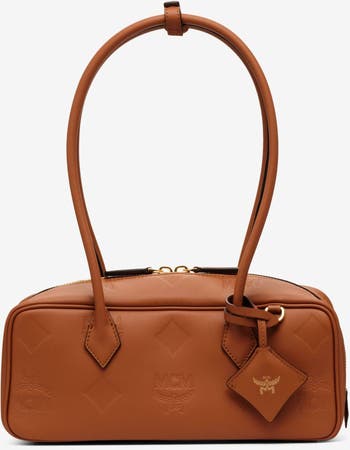 Natural full-grain leather shoulder bag with embossed Maxi Visetos monogram and Bavarian diamond leather charm