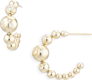 Diamonds dance along the curves of these star-etched huggie earrings rendered in 14-karat gold bubbles so they warmly glow from your lobes.
