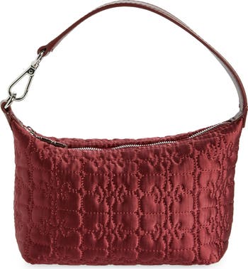 Butterfly-inspired quilting lends whimsical charm to a luxe bag fitted with a convertible shoulder strap for styling versatility.