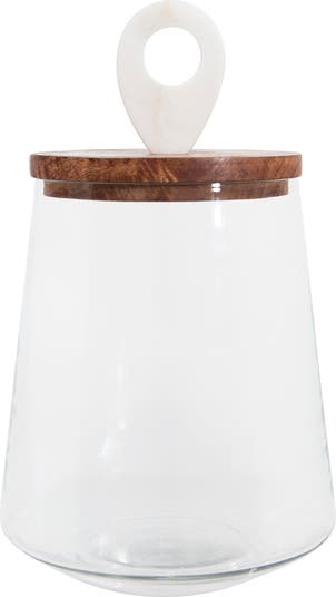 Small Clear Glass Jar with Mango Wood & Marble Lid