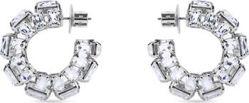 Megawatt glamour is Area's guiding light, which these bold, bedazzling hoop earrings follow flawlessly with scores of faceted crystals that illuminate your lobes like a disco ball.