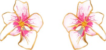 Botanical beauty becomes sculptural adornment in this these gilded cyclamen earrings, their watercolor-like enamel echoing the blurred softness of the chiné weaving technique—a continued thread throughout the spring '26 collection.