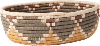 A smaller version of the larger Bread Basket, the Small Bread Basket is perfect and functional for everyday family dinners to entertaining with friends. Part of the Elevate Collection, the 2025 small batch annual basket collection. Handcrafted by women artisans from the Batoro living in the very rural mountains of Western Uganda. These weavers are a part of a cooperative that provides training to single mothers, widows and other marginalized women who are subsistence farmers and weave baskets to provide additional income. Made from all natural, sustainably sourced raffia and banana fibers. Unique, bold mix of natural and AZO free dyes - Natural dyes are made from various plant materials grown in artisan’s villages. The women grow, harvest and make all the natural dyes which take a great deal of knowledge and skill to produce. The hand-dyed raffia is twisted and wrapped around coils of banana fibers, creating structure and intricate designs. No two baskets are identical - there will be slight variations in size and color from the one shown due to the handmade nature of each product. Each basket is both special and unique.