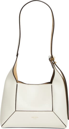 Paneled construction inspired by a diamond's facets lends dimension and soft structure to a smooth leather hobo topped with an adjustable shoulder strap.