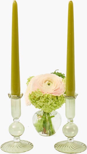 - Dimensions: Due to their charming handblown nature, the candleholders can differ slightly in size and shape., Height: 16cm (6.3in), Width: 6cm (2.4in)