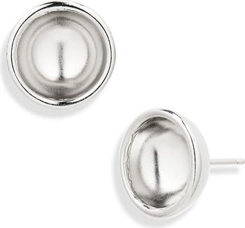 A hollow, half-sphere shape cups light right at the center of these French-made stud earrings dipped in palladium.