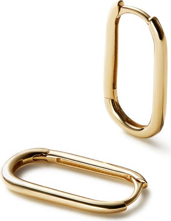 Stand out with our small gold hoop earrings. Made with 100% recycled solid gold, these gold hoops feature a sleek oval shape, perfect for date night or elevated work-from-home fit.