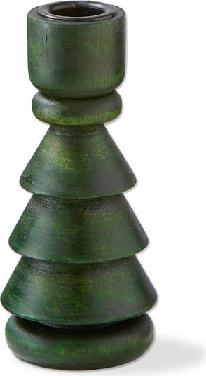 - Enhance your holiday decor with our charming green wood tree taper candle holder.