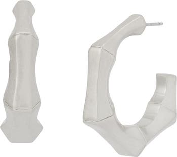 Accessorize your look with the modern, utilitarian style of these angular hoop earrings in a sized-down silhouette.