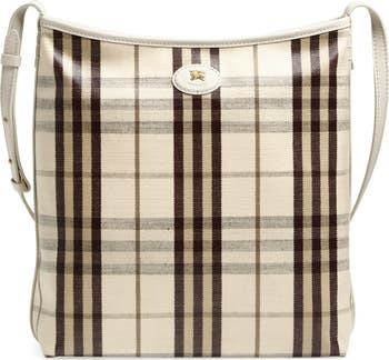 Rooted in the outdoors, this Burberry Check-jacquard shoulder bag is made in Italy from cotton-linen canvas and features a coated finish inspired by rainwear. The unlined design is detailed with Burberry's Knight stamp, an archival motif first seen in the '80s.