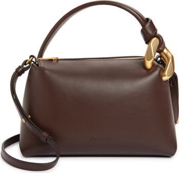 A matching top handle anchored by a chunky curb-chain link emphasizes this season's pragmatic approach to fashion on this crossbody bag made from full-grain calfskin leather.