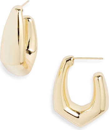 Pillowy, angular hoop earrings in a polished finish add a modern, sculptural quality to your elegant look.