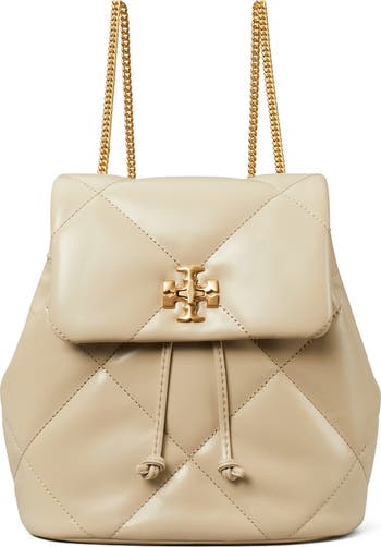 Diamond quilting and polished logo hardware add texture and shine to a compact backpack detailed with adjustable chain straps.