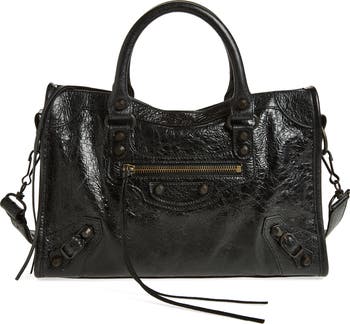 Balenciaga relaunches its iconic Y2K bag with this updated style crafted from crinkled lambskin leather and detailed with signature hardware.