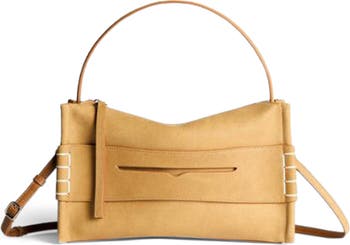 A topstitched 'keeper strap' modeled after classic penny loafers puts a prepster twist on this everyday-sized bag crafted from buttery Italian calfskin.