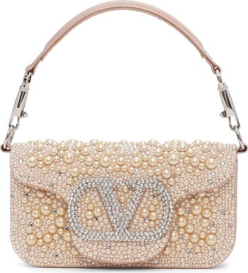 Small Locò VLOGO Faux Pearl & Crystal Embellished Satin Shoulder Bag