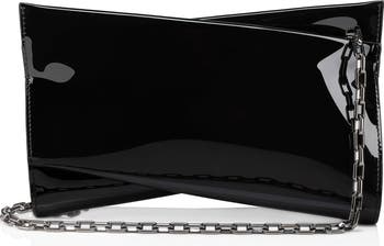 Christian Louboutin puts a sophisticated twist on the evening clutch and highlights its sleek lines in shiny patent calfskin. It opens to reveal a signature red interior with convenient card slots for easy access.