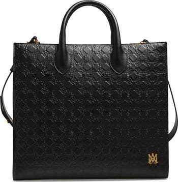 Amiri's Quad Monogram logo quietly textures the supple Italian leather of this structured tote that's meticulously crafted and inherently distinct due to slight variations in the printing process.