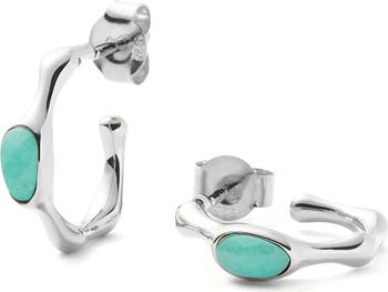 An amazonite bezel nestles in sterling silver to create these undulate hoop earrings that radiate organic beauty.