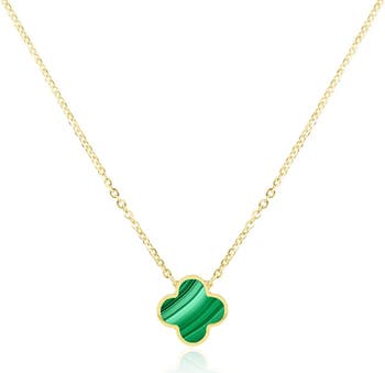 The Lovery Fine Jewelry Small Malachite Single Clover Necklace, Alternate, color, Malachite