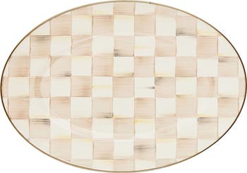 A great addition to the dinner ot buffet table, this steel plate is hand-painted in signature checks and rimmed with bronze trim.