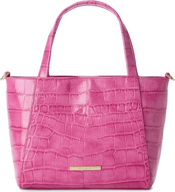 Glinting logo hardware highlights the signature croc-embossed leather of a sized-down bag featuring a structured profile and optional crossbody strap for on-the-go convenience.