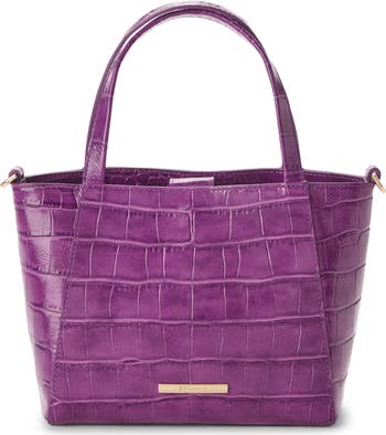 Croc-embossed leather brings standout texture to this scaled-down tote featuring multiple pockets and slender shoulder straps for on-the-go convenience. Signature Brahmin touches—including a light-colored lining, convenient pen loops and a key clip—add to the bag's versatility, while gleaming goldtone hardware provides a last bit of polish.