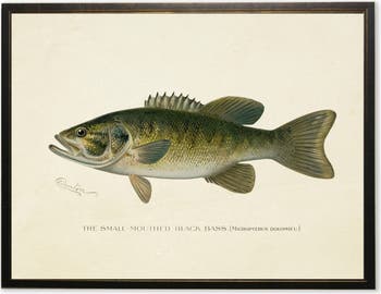 This vintage-inspired print, framed in a copper and black wooden frame, features a small-mouthed black bass. Sized at 20 inches by 16 inches, this made in the USA frame makes for a beautiful addition to any wall.