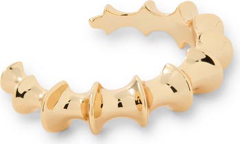 Echoing the natural grooves of seashells, the carved ridges on this sculptural cuff bracelet catch the light like treasures salvaged from the deep.