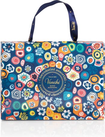 This gift bag contains a box of assorted Pearl chocolates with crunchy centers and melt-in-the-mouth shells. The mouth-watering chocolates, made by Venetian artisans, are crafted of milk and dark Gianduia with whole Piedmont hazelnuts.